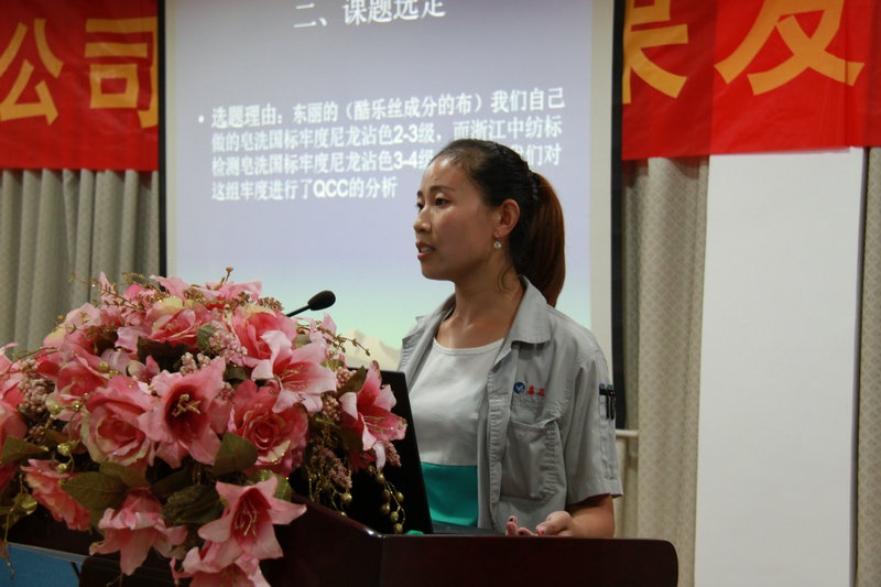 9月29日晚,公司召開了第十屆(2016年上半年)QCC成果發(fā)表會,染整事業(yè)部等6個部門的11項QCC成果在會上發(fā)表。經(jīng)評委打分評選,染整事業(yè)部飛飛組的《去除絲光真絲布的擦白印》等3個成果獲一等獎,染整事業(yè)部優(yōu)化漂白組的《優(yōu)化漂白布染色工藝》等3個成果獲二等獎,品質(zhì)管理部品管組的《降低客退貨率》等5個成果獲鼓勵獎。