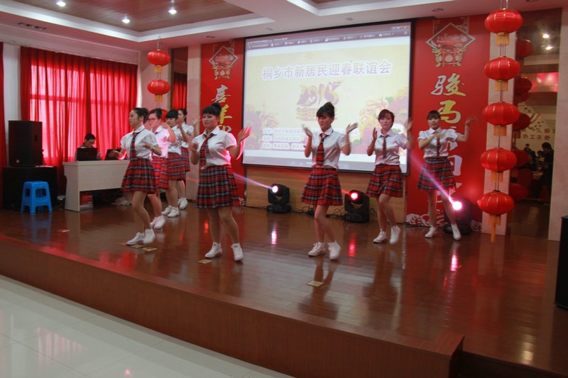 嘉名公司黨總支委員、團(tuán)支部書記蔣亞群主持了聯(lián)誼會(huì),桐鄉(xiāng)市新居民事務(wù)局局長(zhǎng)陳建華、鳳鳴街道黨委書記張建根發(fā)表了熱情洋溢的講話,新居民代表、嘉名公司員工謝建甫作了深情而充滿詩(shī)意的發(fā)言。之后,分別由市新居民事務(wù)局、鳳鳴街道、“嘉名控股”、“新東方油墨”、“豪庭燈飾”等單位選送的文藝節(jié)目登臺(tái)表演,節(jié)目豐富多彩,有舞蹈、男女聲獨(dú)唱、古箏獨(dú)奏、三句半、小品等,嘉名公司的姚鴻、朱芳芳、吳耀、鐘曉蘭等四名大學(xué)生表演的三句半《新年點(diǎn)贊新居民》,以及新居民員工藍(lán)萬康、鄒聯(lián)軍、侯顯紅等表演的桐鄉(xiāng)方言小品《嘉名好》贏得了觀眾的熱烈掌聲,來自新東方油墨、豪庭燈飾的青年員工各自表演的舞蹈《小蘋果》、《串燒》體現(xiàn)了積極向上、充滿活力的精神面貌,聯(lián)誼會(huì)在來自鳳鳴街道的徐小利一首女聲獨(dú)唱《祝福祖國(guó)》中降下帷幕,整個(gè)聯(lián)誼會(huì)沉浸在喜慶歡樂的海洋中。