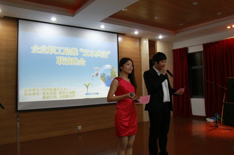 4月29日晚,由鳳鳴街道總工會(huì)主辦,“嘉名控股”、“新東方油墨”、“豪庭燈飾”、“方圓聚合纖”協(xié)辦的“企業(yè)職工助推`五水共治'聯(lián)誼晚會(huì)”在嘉名公司員工公寓區(qū)舉行。晚會(huì)活動(dòng)圍繞“五水共治”,職工青春奉獻(xiàn)的主題,宣傳“五水共治”,體現(xiàn)企業(yè)職工積極參與“五水共治”活動(dòng),整個(gè)晚會(huì)洋溢在熱烈、歡快的氛圍中。來自四家企業(yè)的職工和鳳鳴街道駐村干部表演了自編自演的快板、三句半、詩朗誦、唱歌等各類節(jié)目,晚會(huì)中還穿插了趣味游戲和知識(shí)搶答節(jié)目。嘉名公司姚衛(wèi)良、姚鴻、錢珍、吳耀等表演的“‘五水共治’生態(tài)美”三句半贏得了觀眾的熱烈掌聲,晚會(huì)在嘉名公司平曉紅歌唱的《愛的奉獻(xiàn)》中結(jié)束。