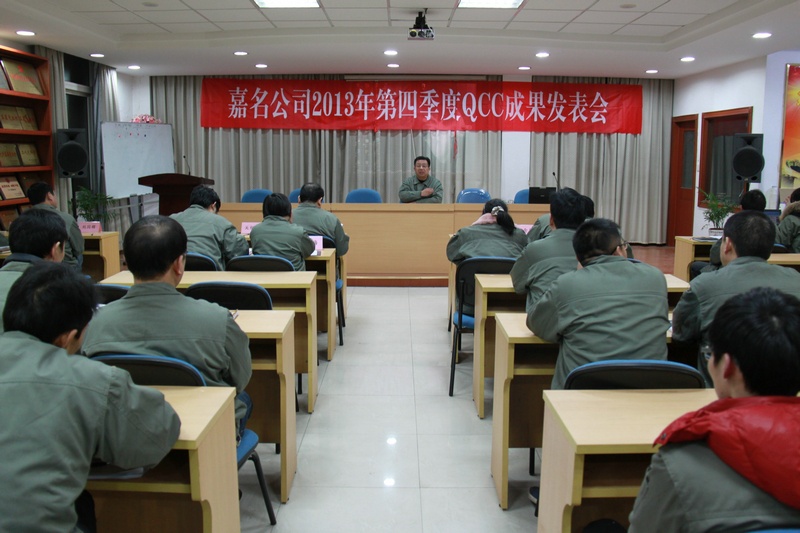 2014年1月13日晚,嘉名公司2013年第四季度(第三屆)QCC成果發(fā)表會召開,會上共發(fā)表QCC成果20項,經(jīng)評委評選,動力設備部福生組的《降低空壓機用電量》等8個QCC成果評為優(yōu)秀獎,紡織事業(yè)部運轉組的《如何降低氨綸汗布的反氨綸》等12個QCC成果評為鼓勵獎。
