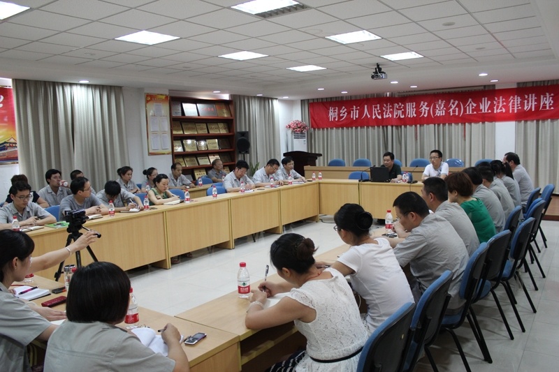 7月27日(周六)下午,應公司邀請,桐鄉(xiāng)市人民法院走進嘉名公司為企業(yè)提供法律服務,在公司行政樓三樓多功能廳,舉辦了一次法律專題講座。公司領導、營銷中心各部門全體人員,財務管理部、信用管理部、品質管理部、采購物控部、經(jīng)編事業(yè)部的營銷、生產(chǎn)、財務負責人等30余人參加了會議。