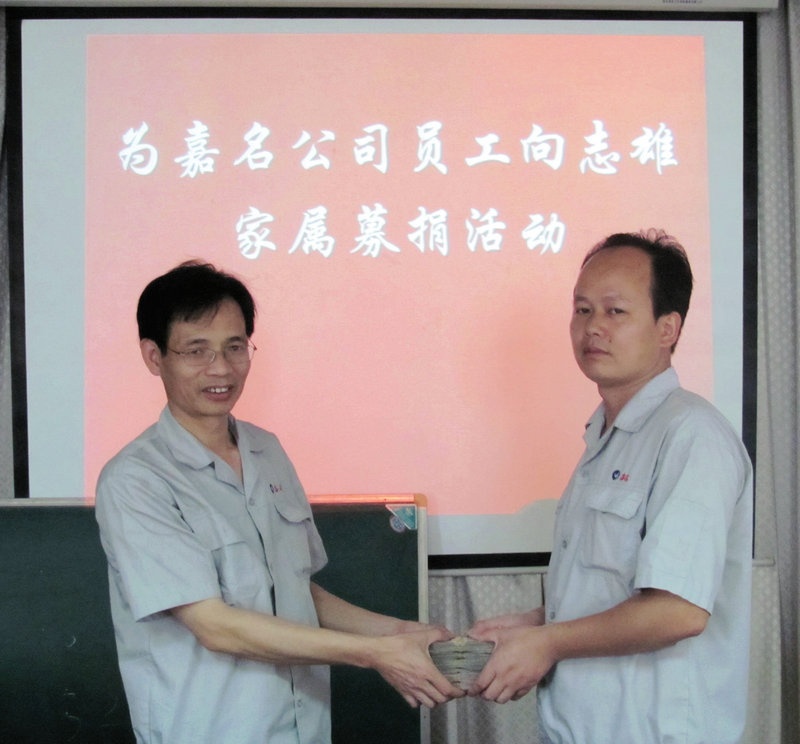 一方有難,八方支援;涓涓細流可以匯聚成浩瀚大海,點滴愛心可以凝聚成愛的海洋。嘉名公司這次募捐活動,捐款人數(shù)之多,充分體現(xiàn)了嘉名人善良的心靈,體現(xiàn)了嘉名公司的凝聚力,向志雄是不幸的,我們衷心希望向志雄的親人能一路走好。